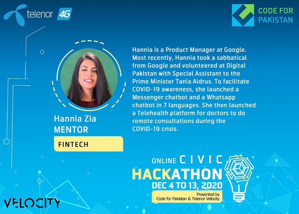 Click here to learn more about the Civic Hackathon 2020, presented by Code for Pakistan and Telenor Velocity.