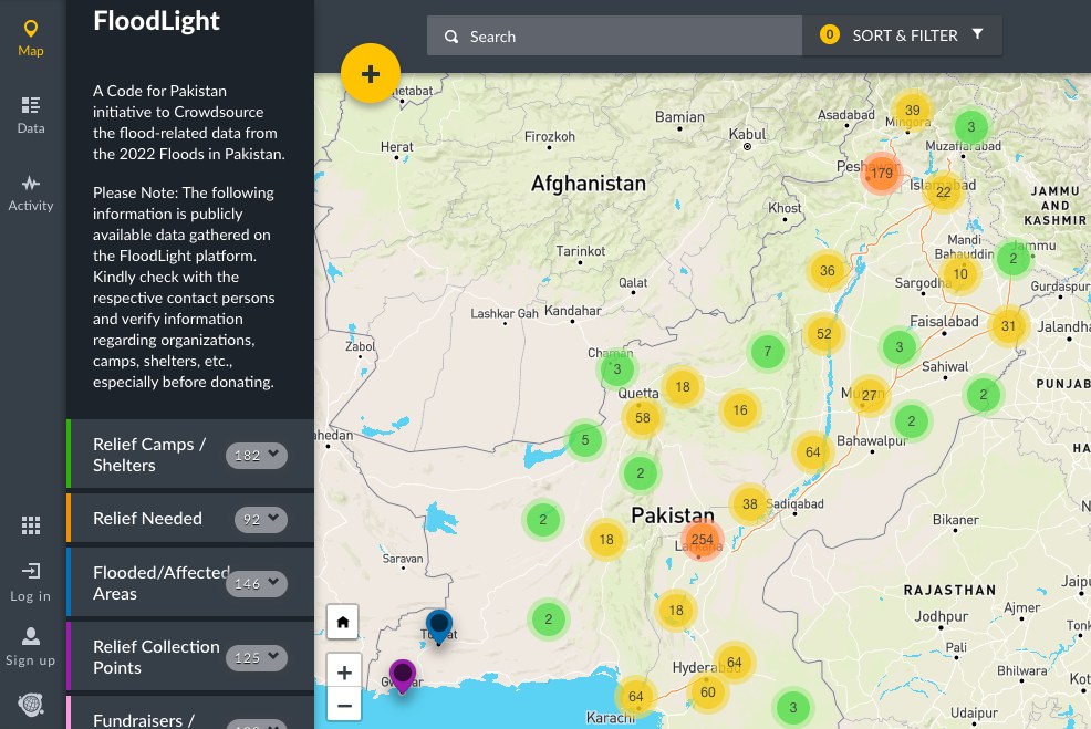 Thanks to our dedicated community of volunteers and civic hackers, we were able to connect with some prominent NGOs like Alkhidmat, Akhuwat and a committed network of on-the-ground volunteers. We wanted to make sure our efforts were reaching the right channels and that we were able to verify the information coming in. A group of volunteers was also monitoring entries on FloodLight around the clock before publishing them.