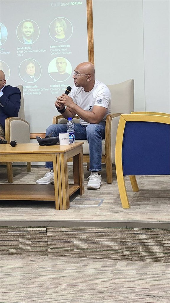 From left to right: Kanwal Masroor -Country Director at CxO Global Forum, Dr. Salman Raza Naqvi - Director at NSTP, Javaid Iqbal -Chief Commercial Officer at STZA, Samina Rizwan - Country Head at Code for Pakistan, Rizwan Akhtar -Chief Technology Officer at Inbox Business Technologies, Imran Jattala -Chief Innovation Officer at Inovators Garage, Noushad Minhas -Country Head at Fasset.