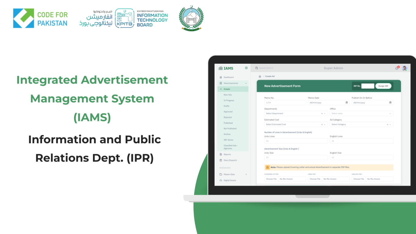 The Integrated Advertisement Management System (IAMS) is a comprehensive digital platform developed for the Information Department to streamline the management of government newspaper advertisements and related payments. The system replaces manual and paper-based processes with an end-to-end online workflow, enabling departments to submit advertisements digitally without the need for physical travel. It includes a centralized MIS for tracking advertisement submissions, approvals, and payments, along with the digitization of historical payment records from the 1990s to 2020 to establish a complete audit trail. Integrated online payment mechanisms enhance transparency, efficiency, and accountability, while improving coordination between government departments, the Information Department, and media houses.